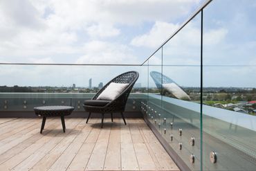 Any external glass balustrades from Rosy Glass will be made with a specially designed, externally rated interlayer for excellent levels of weather resistance. These strong, ionoplast interlayers are clear and thin but do not weather like standard PVB interlayers on the external edges of the glass balustrade, for a longer life.